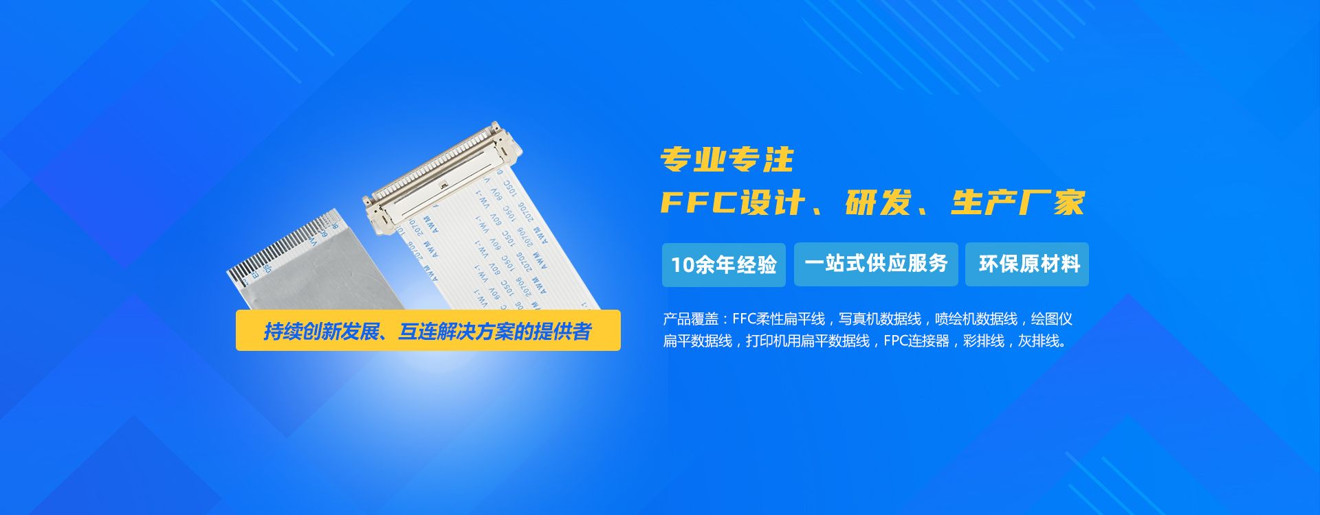 柔性扁平電纜 Flexible Flat Cable(FFC)可以任意選擇導(dǎo)線(xiàn)數(shù)目及間距,使聯(lián)線(xiàn)更方便,大大減少電子產(chǎn)品的體積,減少生產(chǎn)成本,提高